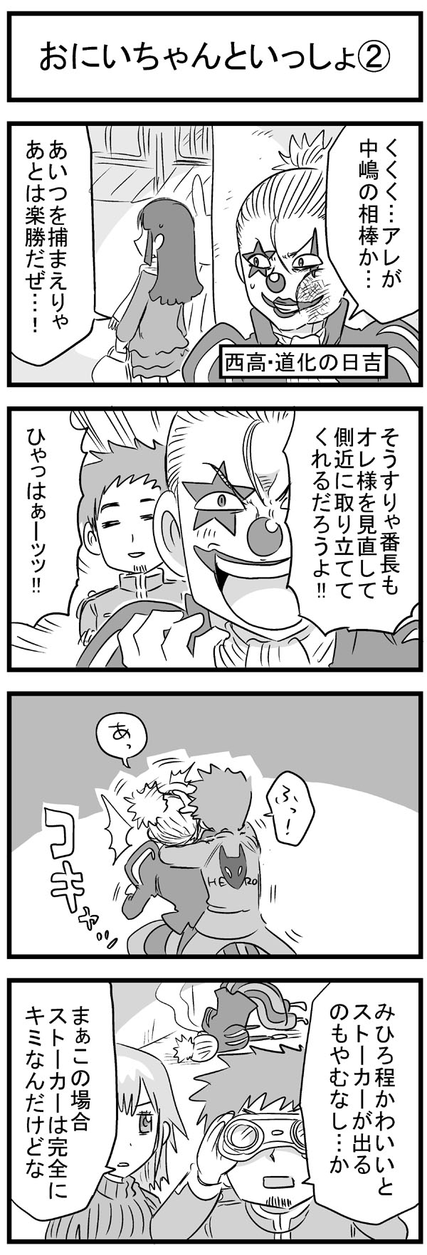ニコニコ静画でも長い時間かけてようやくトータル1万再生を超えて、もっと多くの人に触れてもらえたら嬉しいなぁと思いますよしかし。 他の人気作品の再生回数とかトータルも速度も桁違いですごいもん。 のんじゃん!まとめ(ニコニコ静画) なんやかんやあってこの趣味のシリーズの主軸にしている、キャラの薄い「中嶋」と「みっひー」というふたりがいますが、そのふたりの出会いの物語をもってしてプロローグとしたいと思います。 駆け足でなんとか8本に収まり、このあと番長であるウサギ山と戦ったり、さらに1年後に「その3・4」でナメック星に旅立つんでしょうね。 何言ってるんだワシは。 描いてから見直すと、ネームの粗とかすごい目に見えてくるんだけど、そういう反省は雑誌に投稿する漫画とかで活かしていきたい。 先日ブログでも書いた保険委員モノの方は、ちゃんと色々意識してネーム作りました。 単純に描いていて楽しいので、やっぱり4コマ漫画はいいなぁと思いました。 あとはこれを仕事にできたらどんなに嬉しいことか。 そのためにはちゃんと面白い4コマ描けるように頑張ろう。 |