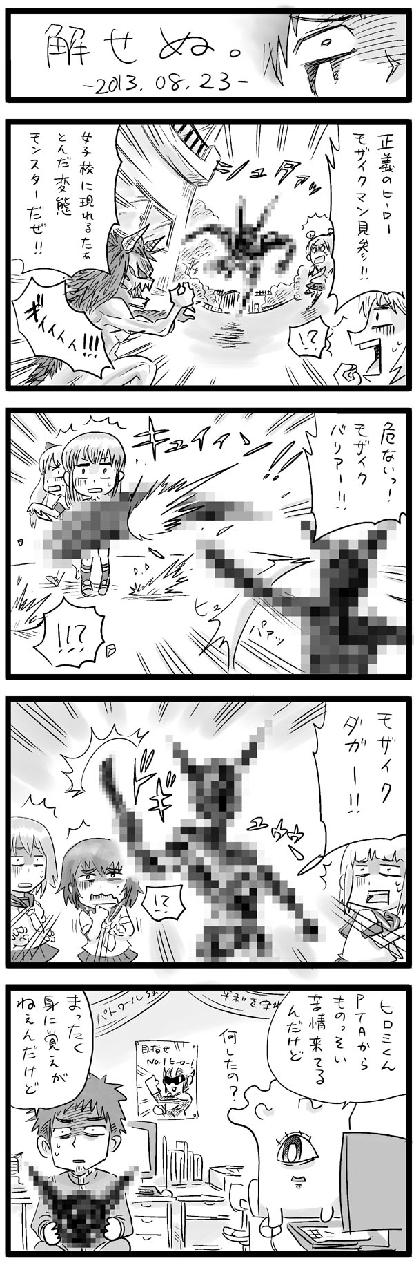 × [PR]上記の広告は3ヶ月以上新規記事投稿のないブログに表示されています。新しい記事を書く事で広告が消えます。 こうしてほぼ趣味の4コマを描いていると、 投稿用とは違い「気負わない」ものが出来るんですが、 その気負わないで描いたときの自然体が身体にしみこんで、 投稿用でも出るといいな、というのがこれの狙いでもあります。 書き込みのレベルを調整してみたりもしてますが、 どのくらいがちょうどいいのか探るのに役立てばいいな。 ここ何回かは書き込みの量を上げてます。 自分の場合、投稿用ではどうしても上手く描こうと頑張るので、 原稿に自分の自然体が出てないと思うんですよ。 だから所々なんだかいびつになったりする。 数をこなしていけば身体が覚えてくれると信じて今日も4コマを描く。 にほんブログ村 にほんブログ村 PR 今週は毎日帰宅が夜の11時を越えて、割とダウンしてます。 朝は7時に出るから何もする余裕ありませんよちくしょう。 土曜日も出勤で来週もこんな感じだろうから、 今週の日曜日には投稿用の原稿を完成させないと月末に間に合わないかもなー。 そしてpixivに投稿してるこの4コマ群が、軒並み低評価なんで割りとへこみます。 「まぁそら点数低いわなぁ」と思うのもありますが、自信があるのにも4点とか入れられるとへこみます。 改めて自分のレベルの低さを実感しますな。 今回の4コマも4コマ目に誤字があることを投稿してから気づいたし。 もっと頑張ろう。 にほんブログ村 にほんブログ村 のんじゃん!を「ニコニコ静画」にも投稿することにしました。 http://seiga.nicovideo.jp/comic/7760 内容はまったく同じですけど、のんじゃんだけの投稿になるのでまとめて見やすくなる感じですね。 pixivの遅れ放送ですが、1日3話くらいのペースで公開してって、数日後には追いつくような流れ。 クオリティ的にアレな部分もある作品ですけど、 一人でも多くの人に見てもらえたらいいなぁと思います。 まず見てもらうことを目指していきます。 視聴者から少しでも反応があれば嬉しいけどあんまり期待はしない。 メインキャラが二人にまで減ったんで考えるの楽でした。 扉絵はいつも最後まで悩むんですよね。 今回は図書館で考えたら割りとすぐ浮かんだんでよかった。 1本目の1コマ目・5コマ目として使うのもアリなんですが、通常の4倍の大きさのコマは ぶっちゃけ持て余しすぎるんでマジ勘弁。 完全なバッドエンドオチですが、 生きてて病院に看病に行ってなんか良い感じにラブコメでもすればいい。(他人ごと) 来月は出版社様に持ち込みに行きたいと思っていますが、 一昨年の初持込が2社だったので、今年は4社くらい行ってみたいと思います。 前回に引き続き、竹書房様と芳文社様ははずせません。 前回行けなかった「まんがタウン」の双葉社様にも行きたいですね。 今描いている作品と、持ち込みまでに描く予定のもう一本を持参し、 ついでにこの「のんじゃん!」も同人誌風にまとめて持って行こうと思います。 色々雑で勢いだけの作品なんで、逆にマイナス要素かもしれませんが。 にほんブログ村 にほんブログ村 |