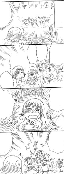 ごっちゃごっちゃしてるのはまぁそういうネタだからいいとして、最後のコマで黒髪の子が叫んでたりするのがちょっとね。