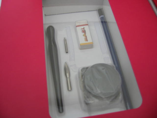 第1号特別価格なんだけどさ、ふろくがさぁ、ペン軸とペン先2本と消しゴムとえんぴつとインクっていう豪華仕様なんだよ。それで