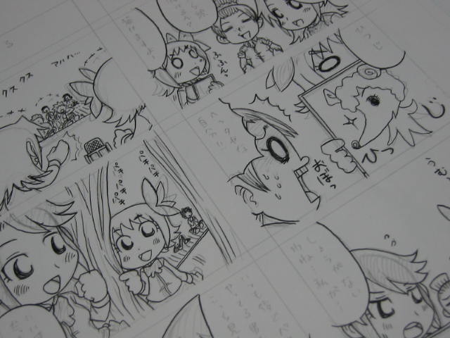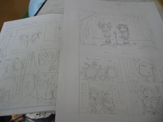 最初に6P目から描いたのですが、最後扉ページを描く頃にはこなれてきて頭身が変わってしまい、後半3Pくらい胴体を書き直すはめに。